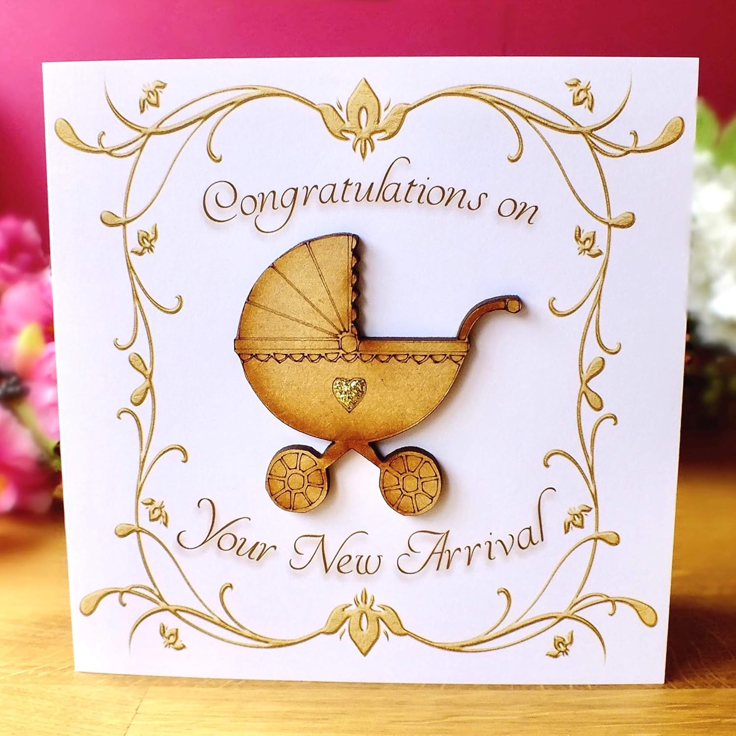 Personalised New Baby Card Handmade Pram With Lace Congratulations