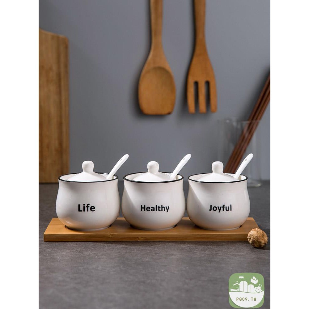 3pcs Set Toples Bumbu Dapur Bahan Keramik Warna Hitam Dengan Tutup