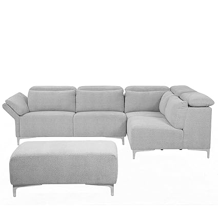 Modern Fabric Left Hand Corner Sofa With Ottoman Light Grey