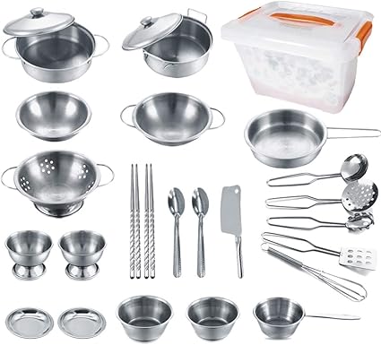 Dcs Kids Stainless Steel Toy Kitchen Set With Fancy Wooden Stand