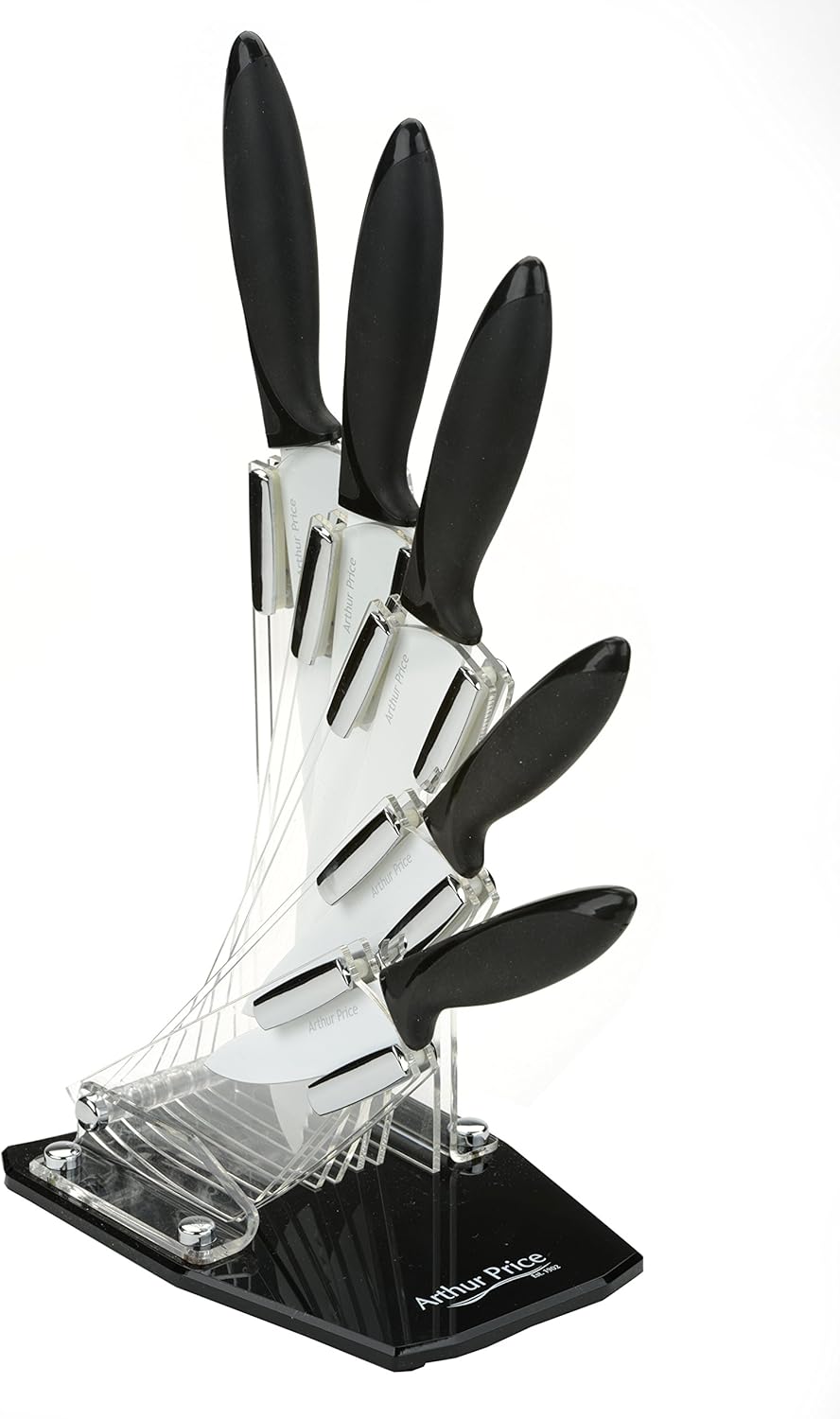 Arthur Price Kitchen 6 Piece Acrylic Knife Block Set Black White