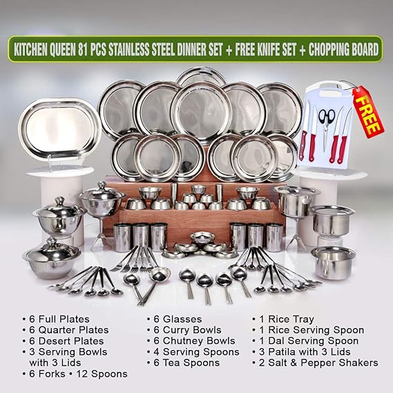 Kitchen Queen 81 Pcs Stainless Steel Dinner Set Free Knife Set