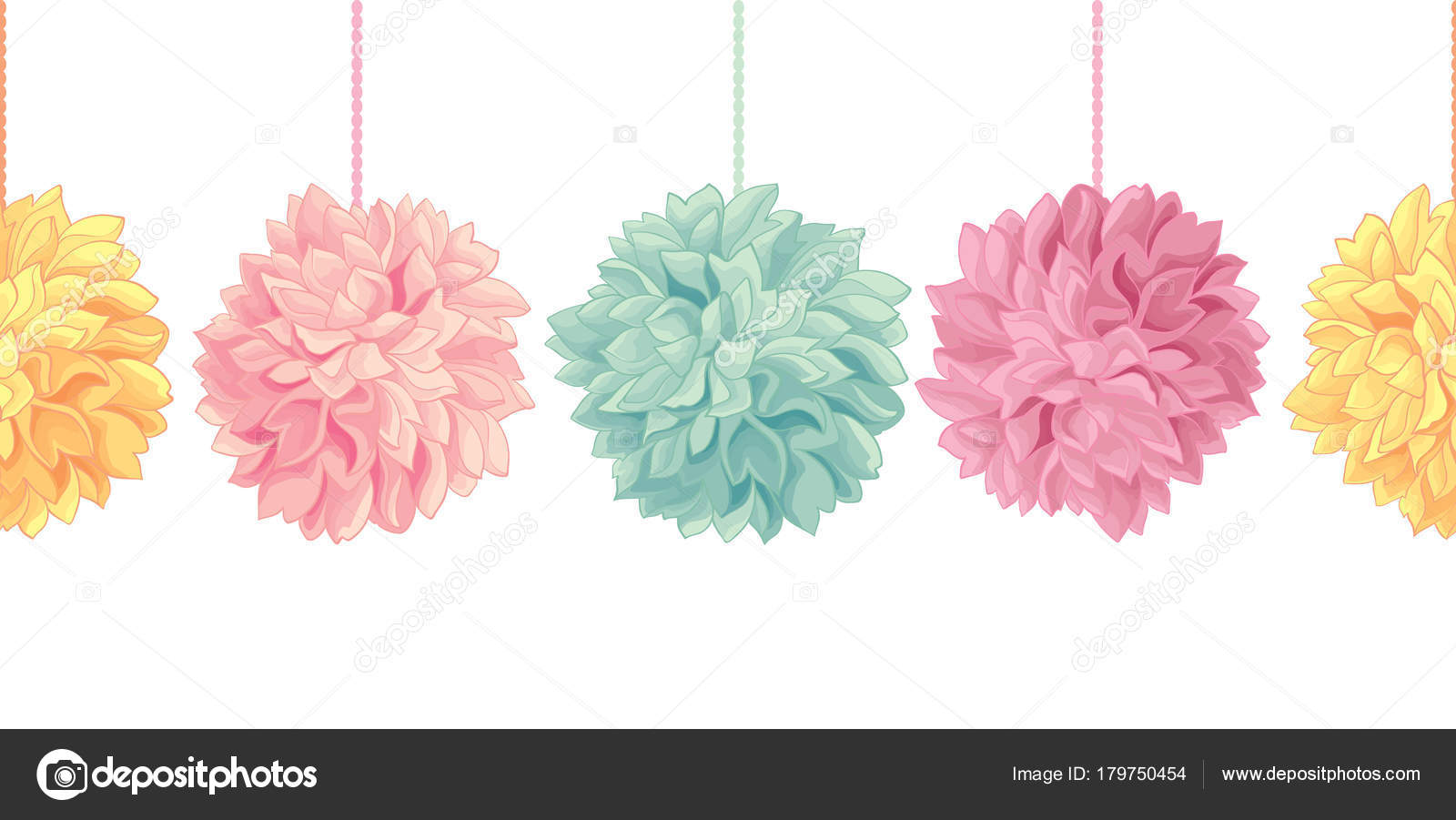 Vector Hanging Pastel Colorful Birthday Party Paper Pom Poms Set