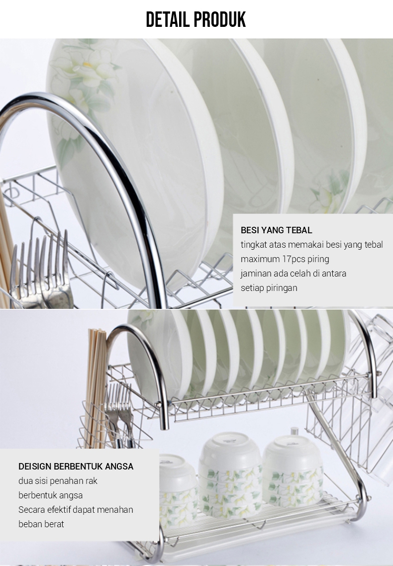 Angola E10 Rak Piring Stainless Steel Susun 2 Tingkat Layer