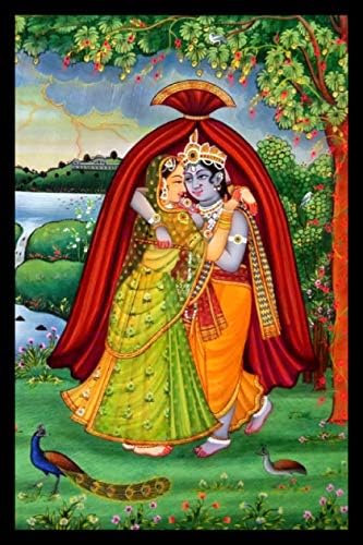 Beautiful Handmade Radha Krishna Romance In Garden Painting On