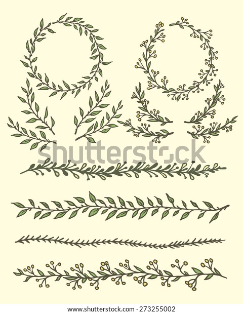Hand Drawn Colorful Wreath Borders Laurels Stock Vector Royalty
