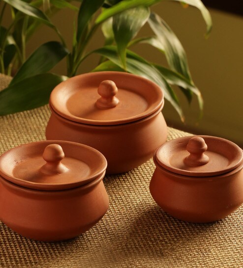 Buy Exclusivelane Earthen Clay Handi Container 600 Ml Set Of 3