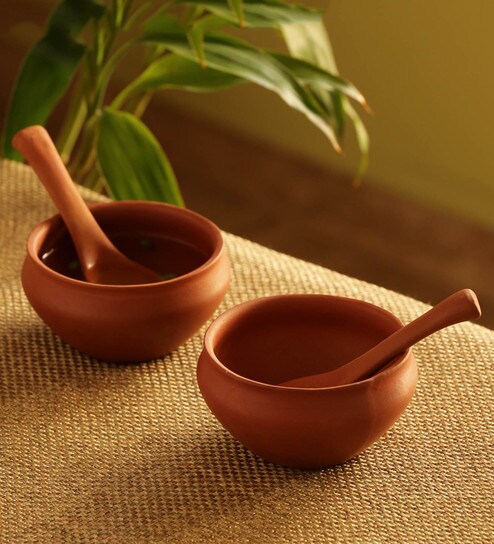 Buy Exclusivelane Handmade Brown Earthen Clay Bowls Set Of 2