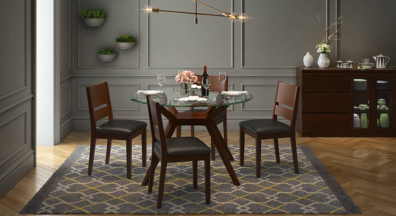 Wesley Cabalo Leatherette 4 Seater Round Glass Top Dining