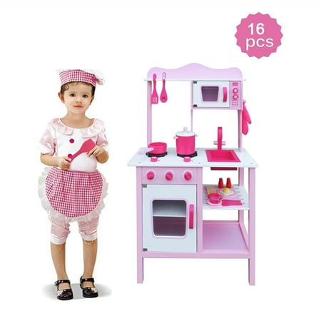 Play Kitchen Set Kids Wood Kitchen Toy Cooking Pretend To Play
