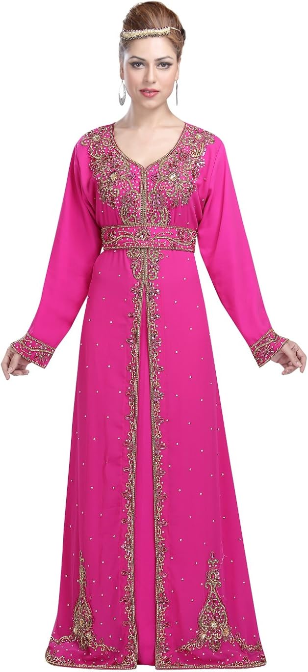 Latest Party Wear Dubai Kaftan With Simple Hand Made Embroidery