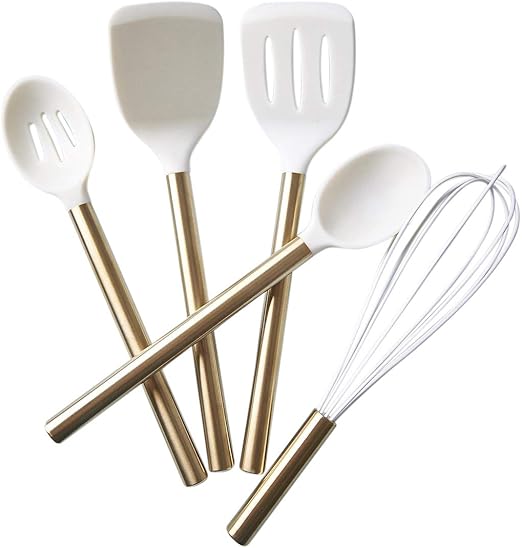Amazon Com Ciroa Gold And White Silicone Cooking Utensil Set