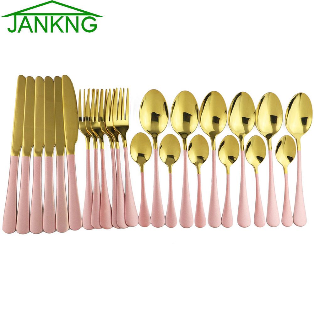 Pink Gold Dinnerware Mirror Cutlery Set Kitchen Knife Spoon Fork