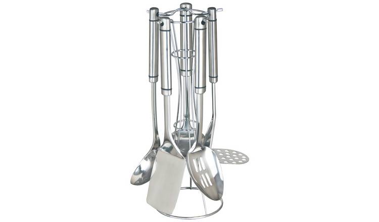 7 Piece Stainless Steel Kitchen Utensil Set With Hooks And Stand
