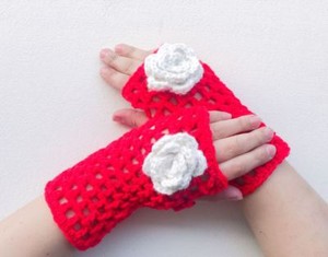 Fingerless Gloves Crochet Handmade Wear Red Fingerless Gloves